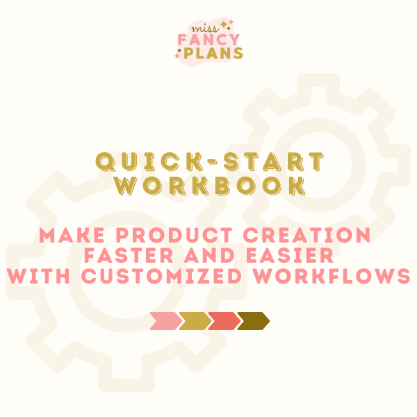 Want to make your product creation faster and easier, but keep forgetting the steps or making mistakes? A workflow will help with that! This workbook will show you how to get the steps out of your head and into a format that suits you, so that you have a customized workflow to follow as you complete a task.