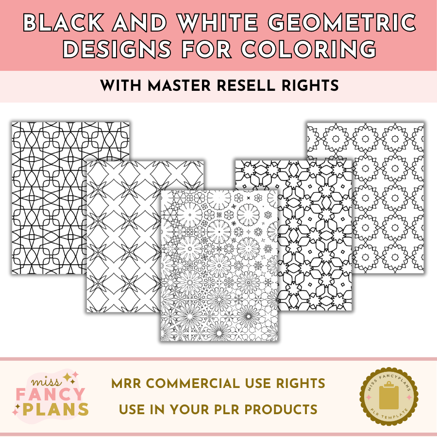 Try a sample set of coloring pages! You’ll get five beautiful geometric and metamorphic designs to use in your own coloring books, as coloring pages, as backgrounds, or anywhere else in your products! These come with Master Resell Rights and you may use them in PLR products, as well as personal-use products.